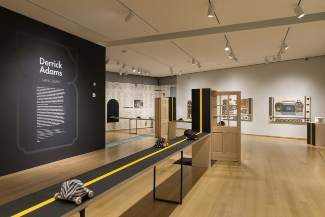 Desde el 25 de enero de 2018 hasta el 12 de agosto de 2018 estará en activo la exposición "Santuario". Una muestra de collage perfomance, video, sonido, textil, papel y escultura multimedia. Derrick Adams revindica la igualdad entre la raza negra y desde su expresividad como artista examina con fuerza la cultura popular y los medios sobre la percepción y la construcción de la autoimagen. Para ello manipula sus obras con estructuras en superficie o alzadas de formas improbables. Lo que es igual a utilizar todo tipo de materias para logar su obra, en la que se reimaginan destinos seguros para un viajero afroestadounidense.