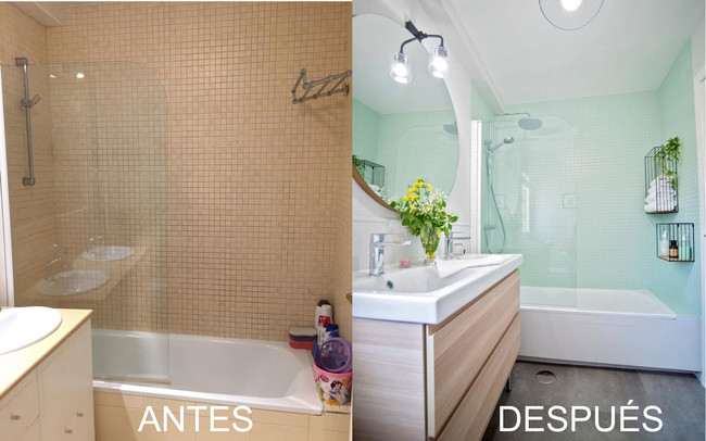 Esta es una transformación que demuestra que un baño antiguo y desfasado se puede transformar en algo actual y acorde con las tendencias ahorrándonos el polvo que se genera en una obra.
