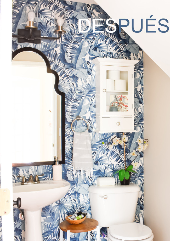 A priorí, el papel pintado puede parecer poco apropiado para un espacio tan pequeño, o incluso poco práctico pero el uso normal de un lavabo y un inodoro no supone que las paredes se tengan que mojar. De todas maneras, para mayor tranquilidad se puede optar por proteger el salpicadero del lavamanos con un espejo o porcelánico o bien elegir algún papel con base vinílica.