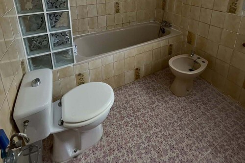 Para el suelo, se instalaron láminas estilo madera posicionadas encima de la baldosa anterior. Un suelo resistente y especialmente adecuado para viviendas destinadas al alquiler, donde la durabilidad es un factor clave. A la vez, se sustituyó el inodoro y se procedió a pintar la bañera, un trabajo minucioso que exige una preparación precisa de la superficie y la aplicación de hasta tres capas para obtener un acabado uniforme y más blanco.
