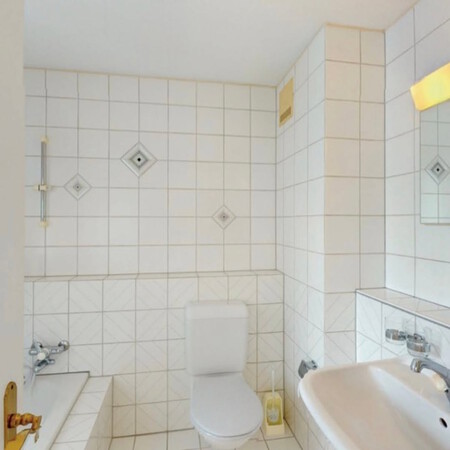 Como podéis ver el cambio principal es suprimir la bañera y cambiarla por una ducha al mismo nivel que el resto del suelo haciendo el baño mucho más cómodo y totalmente accesible e incrementando la sensación de amplitud. La mampara fija se puede encontrar en Leroy Merlin por 149 euros.