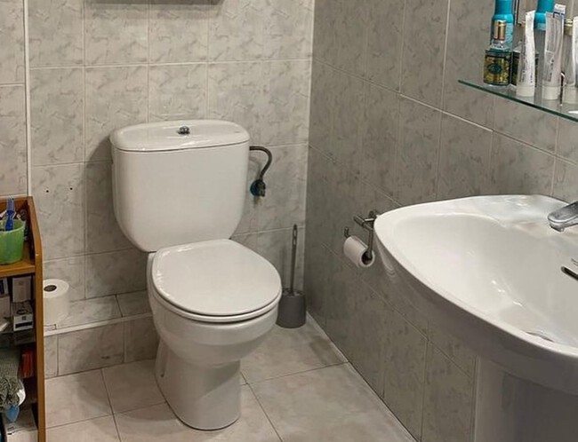 El baño Antes de esta intervención estaba en buen estado físico – estrictamente cumplía de sobra sus funciones-, pero los azulejos agrisados con estampado de aguas le echaban años encima. El mismo azulejo en suelos y paredes, empastaba el resultado y tampoco ayudaba a elevar su estética el lavabo de pie porcelánico. Una pieza que no resultaba atractiva ni útil al no contar con espacio de almacenaje propio.