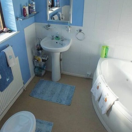 Este es el caso del cuarto de baño de Heidi Ford. Una estancia con una combinación de colores cuando menos extraña, y con una bañera todavía más extraña todavía. Por no hablar de que el baño estaba enmoquetado por completo... (no me preguntéis quién enmoquetaría un cuarto de baño, con la humedad, la ducha, y las salpicaduras del inodoro)
