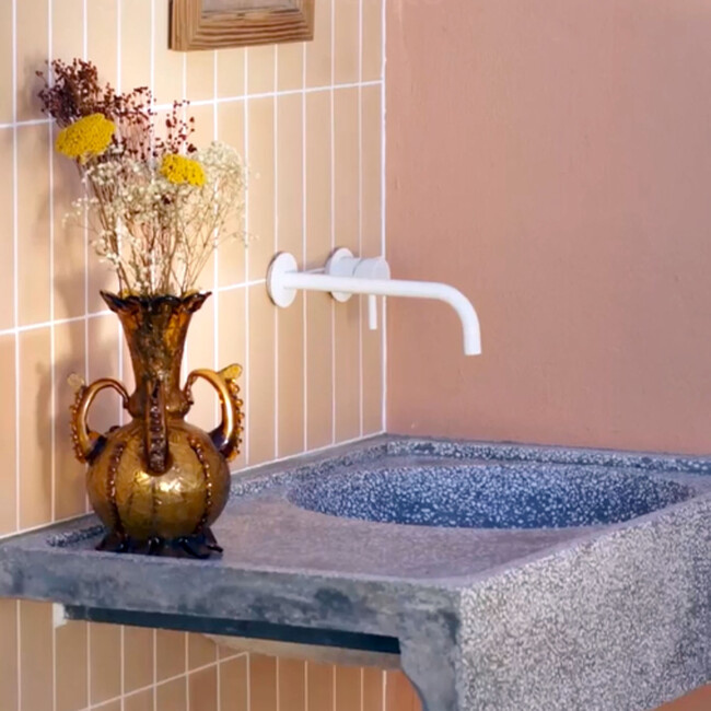 En un video de producción muy cuidada -con formato de mini película- acompañamos el recorrido de una pila o lavabo antiguo de piedra (una de las tendencias del momento) hasta su nuevo destino; un cuarto de baño contemporáneo lleno de color (el naranja es el protagonista) y de líneas contemporáneas como las del elegante grifo de pared de Icónico.