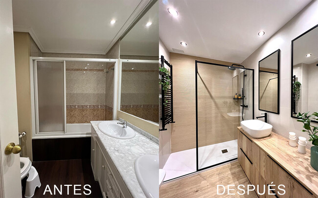 Tras la reforma este cuarto de baño se ha convertido en un amplio espacio que practica la calidez y la calma.