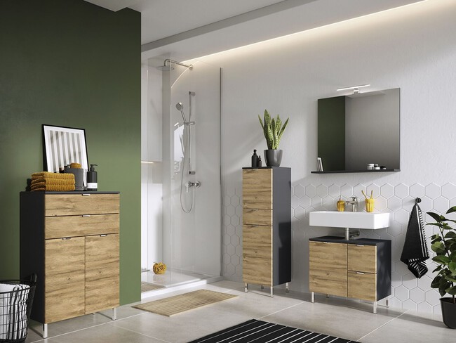 El armario alto de baño de Germania que hemos encontrado en Lidl es ideal para aumentar la capacidad de almacenaje de tu baño ocupando muy poco espacio. Tiene tiradores de borde en metal color plateado, y en origen estaba disponible en cuatro colores: blanco, gris, roble/blanco y roble gris. Pero ahora, dado el éxito de ventas, tan solo están disponibles en dos modelos: gris, y roble gris.