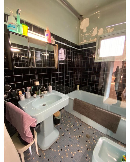 A la vista está que el cuarto de baño de la foto sobre estas líneas necesitaba una reforma. Posiblemente en su momento les pareció una gran idea poner los azulejos en negro, un toque diferente, pero en realidad en espacios pequeños el negro resta espacio y luz y acaba por resultar un tanto agobiante.