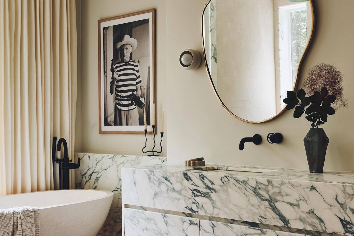 La reconocida diseñadora Sarah Sherman Samuel (@sarahshermansamuel) es referencia en este tipo de iluminación. Sus baños, cálidos y luminosos, combinan luz indirecta y espejos de gran tamaño, logrando espacios que parecen casi duplicados.