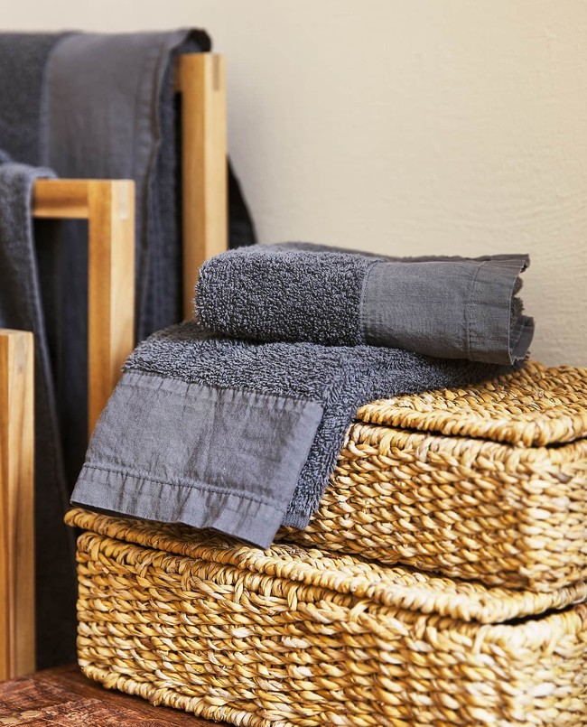 TOALLA EFECTO LAVADO en gris o en blanco, Debido al acabado especial "Garment Dyed", las variaciones de color son una parte inherente del producto y hacen que cada toalla sea única