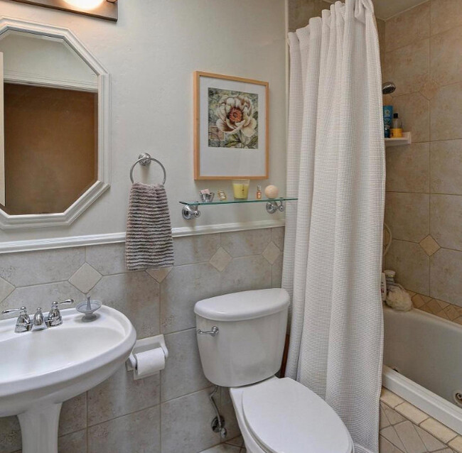 Este baño cuenta con una hermosa bañera cuyo buen estado hacía pensar que era más reciente que el resto del mobiliario. Parte de las paredes no estaban alicatadas pero, como el lavabo, lucían un tono amarillento que delataba el mal mantenimiento del baño.