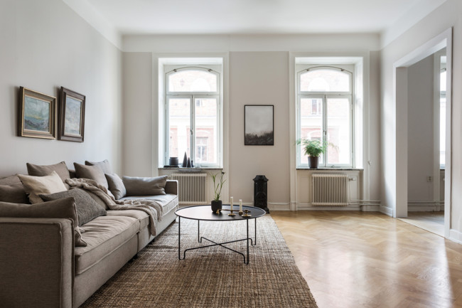 Nuestra primera propuesta la encontramos en la calle Västmannagatan de Estocolmo, en un precioso apartamento la mar de agradable, muy luminoso y con unas preciosas ventanas que dan mucha personalidad al espacio. La silla rosada con patas doradas del escritorio es sencillamente genial.