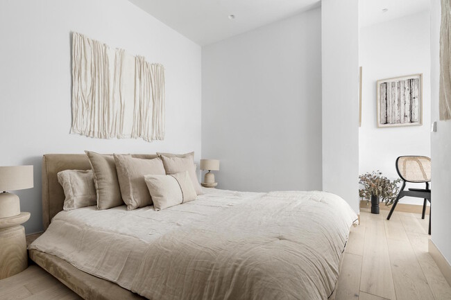 Las zonas privadas se caracterizan por un ambiente de intimidad, en el que la escala de los espacios invita al descanso. Los muebles minimalistas, elaborados con materiales naturales, la decoración artesanal, los colores neutros, los tejidos orgánicos, y la iluminación tenue que baña los espacios, determinan un claro salto de privacidad.