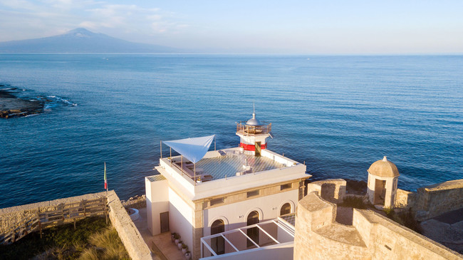 En el lugar que antes ocupaba un antiguo faro en Siracusa, (Silicia), ahora se encuentra esta preciosa casa lujosamente restaurada que incluye una espectacular terraza en la azotea con vistas al mediterráneo y al monte Etna.