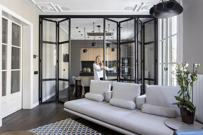 Los dueños de esta vivienda encontraron en Houzz en el estudio GokoStudio los profesionales adecuados para adaptar con éxito esta vivienda a las nuevas necesidades de esta familia. La nueva redistribución llena de luz natural a la zona de día y añade fluidez al espacio donde la familia comparte su día a día. Este proyecto es especialmente popular entre la comunidad de Houzz porque muestra una de las soluciones más demandadas por los particulares: usar particiones o paneles móviles para separar una estancia si se desea pero sin renunciar al espacio abierto. Desde GokoStudio apuntan que "se trata de una intervención respetuosa de un piso en el Eixample barcelonés que dota a una vivienda centenaria de las necesidades de funcionalidad, distribución y funcionalidad que exige la vida actual, recuperando y potenciando a la vez los elementos originales de la vivienda que le confieren su valor singular".