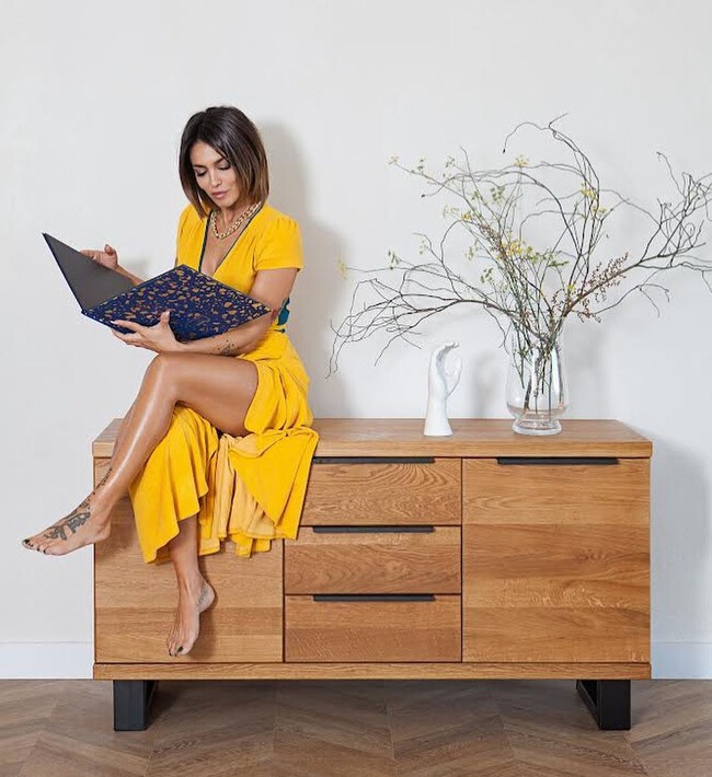 Aparador de fresno y rejilla, Scoubi, un aparador con estructura y patas de fresno macizo con puertas de rejilla. Un aparador natural que encaja igual de bien en un ambiente contemporáneo o bohemio. Bonito y funcional.