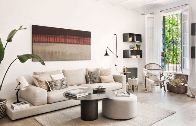 El salón ideal para los españoles es cálído y moderno a la vez. Este salón diseñado por Vive Estudio ha sido uno de los favoritos de la plataforma y refleja bien las preferencias de la mayoría de usuarios. Su paleta de colores neutros y el mobiliario de estilo contemporáneo se funden en un salón cálido, confortale y atemporal.