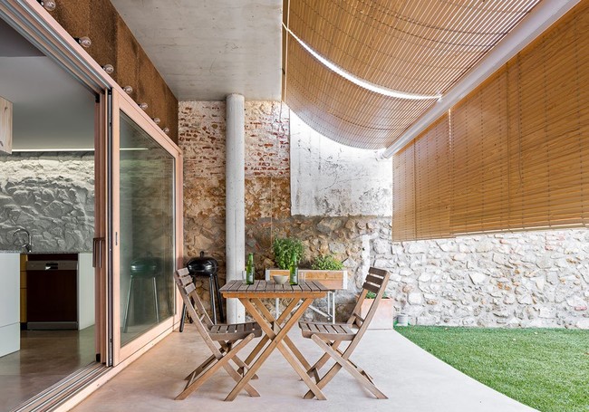 La transformación en vivienda-estudio ha sido obra del estudio Valor Llimós-arquitectura. A pesar de la gran transformación interior, el estudio decidió mantener en su estado original los muros de mamposteria de la finca con lo que han conseguido que la fachada de la casa pase prácticamente despercibida y quede integrada en el paisaje urbano.