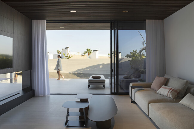 Para aprovechar el clima cálido de la Región de Murcia, la planta baja se abre al exterior, con sus inviernos suaves y días soleados. Incluye una zona de día diáfana, con ausencia de pasillos y abundantes zonas de almacenamiento. También incorpora un garaje, una zona de servicio y una pequeña habitación de invitados.
