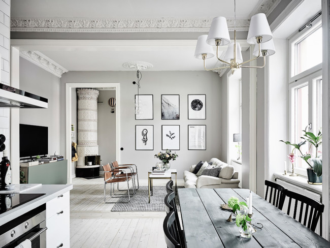 Hoy, nos vamos, aunque sea virtualmente, hasta Suecia, y más concretamente hasta la ciudad de Gotemburgo para conocer este precioso apartamento que acaba de ser vendido y que me ha atrapado por completo por los techos altos, por las elegantes molduras, y por cómo han extraído todo el jugo al espacio disponible.