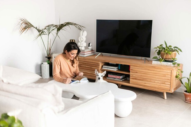 Las casas son cada vez más funcionales. Y si antes en muchos hogares se ponían una mesa de formato XXL para reunir a la familia, ahora prima la funcionalidad y dejar el máximo espacio disponible. En este caso, Nagore ha optado por una mesa de madera de mango que apenas ocupa espacio, y que es una joya en sí misma por su diseño.