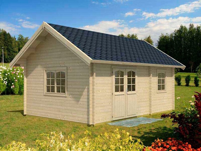 El tejado se compone de unos travesaños tratados que sujetan toda la estructura y de tablas solidas machihembradas. La puerta tiene un marco de madera laminada y la parte inferior se cubre de acero inoxidable para evitar daños generados por los zapatos al entrar y salir. Este modelo incluye gomas y silicona para las puertas y ventanas que aseguran que se cierren bien evitando así entradas de aire y corrientes. Las ventanas son oscilo-batientes y están fabricadas con cristal doble que aísla el interior para mantener la temperatura; además disponen de protección metálica para la lluvia y la parte delantera de la casa tiene un alero de 50 cm para dar sombra en verano y que cuando llueva no salpique el agua en la casa.
