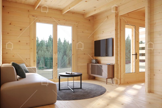 La casa de madera “Sepik” se divide en zona diáfana, cuarto de baño y hall o terraza cubierta. Dependiendo de las necesidades en cada caso, el plan abierto se puede diseñar como una pequeña zona de descanso con un sofá y una mesa de café, si el sofá es sofá cama podemos usarlo también como dormitorio, o podemos instalar una pequeña cocina con el equipamiento y utensilios más necesarios, incluso con un escritorio, silla o estantes para documentos si lo queremos como oficina.