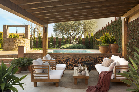 El sello de la diseñadora de proyectar espacios simétricos que conecten el interior con el exterior lo encontramos en la cocina. Un espacio vital para la comunicación familiar, que tiene su alter ego en el porche del jardín.