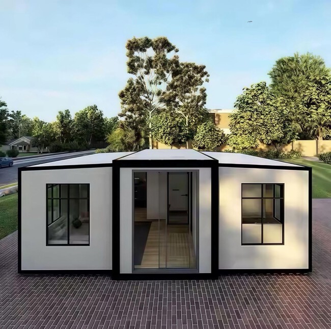 El concepto es tan llamativo como radical. Esta “casa” llega en forma de caja metálica, similar a un contenedor de carga, y al desplegar sus paneles, se convierte en una estructura habitable con divisiones interiores. Algunas configuraciones permiten hasta cuatro dormitorios, y se habla de cocina, baño, ventanas de PVC, aislamiento térmico y, por supuesto, un diseño compacto y fácil de montar.