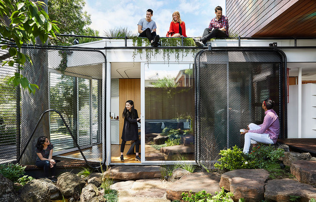 Cerca del Zoo de Melbourne y próximo al parque Edinburg Gardens se buscó un terreno alejado del ruido y el caótico ajetreo urbano. Su arquitectura se caracteriza por filtrar el mundo exterior y crear un hogar fuera de la locura del mundo real, pero ¿qué podían hacer cuando la casa se compartía con diferentes miembros y cada uno con un dilema?