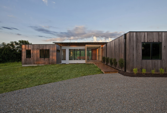 Esta vivienda situada en Indiana, Estados Unidos, se sitúa en un entorno natural rodeado de naturaleza silvestre y es la casa de una familia de cuatro miembros que buscaban como segunda residencia una vivienda moderna, modesta y eficiente en el uso de la energía.