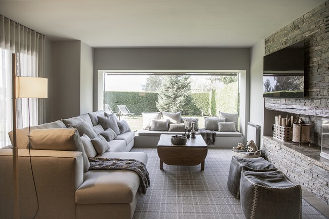 Durante la reforma, y con el objetivo de priorizar la comodidad y aumentar la entrada de luz natural, desde el estudio de interiorismo apostaron por abrir un nuevo gran ventanal en el salón, al que añadieron la función de banco, una excelente solución para aumentar la sensación de amplitud