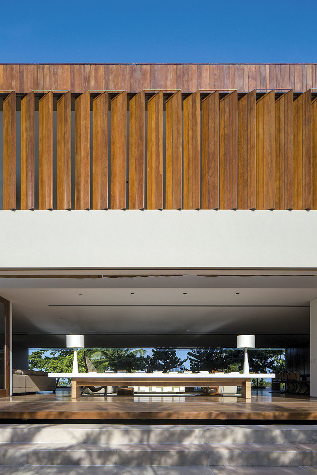 El paisajismo es obra de Renata Tilli y tenía como objetivo principal crear privacidad para la familia a la vez que conectar la casa con a playa a través de un camino sinuoso. Las especies locales se mezclaron con plantas adaptado al clima extremo. La vegetación que rodea la casa sin duda mejora la conexión entre dentro y fuera, que jugando con la fuerte luz ecuatorial que subraya los colores y texturas.