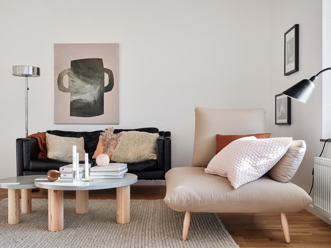 Este piso en Estocolmo parte de un concepto neutro, al que se han incorporado con acierto accesorios con los colores de la temporada. Los colores terracota, entre granates y naranjas, o los rosas palo que casi rozan el beige, son los colores de máxima tendencia.
