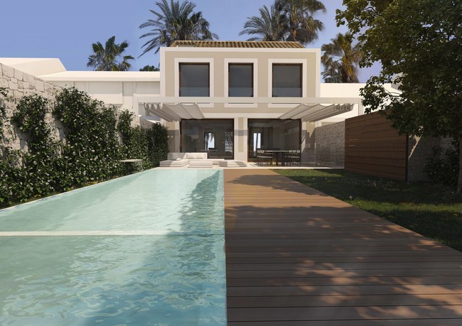 Como resultado del estudio de los elementos ornamentales de esta tipología de vivienda, se propone simplificar a la mínima expresión molduras, recercados y balaustradas con el objetivo de mantener el carácter pintoresco del paseo a la vez que se ofrece una imagen más abstracta, conceptual y contemporánea.