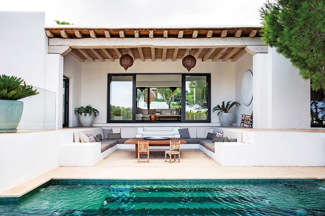 Empezamos con Decofeelings y esta casa en Ibiza a la que a muchos de nosotros nos gustaría poder teletransportarnos de vez en cuando. Para vestir los asientos de exterior y hacerlos más confortables un juego de dos fundas de cojín en gris 100% algodón cuesta en Amzon 12,99 euros.