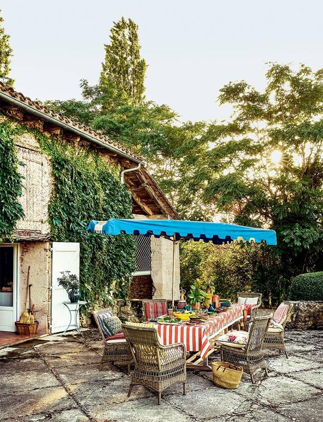 Empezamos semana decorativa con Vintage and Chic y la casa de Lucinda Chambers en el sur de Francia que nos muestra una mesa de exterior perfecta para reunirse con allegados este verano con seguridad. Para una zona de estar exterior, elegante y completa, en ratán sintético un conjunto de sillones, sofá y mesa de jardín lo encontramos en Amazon por 2359,91 euros.
