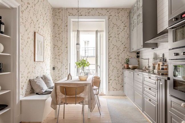 Empezamos resumen semanal con las ideas para renovar cocinas, Una Pizca de Hogar y la propuesta de incorporar papel pintado en la cocina. Inspirado en su ambiente, una alfombra gris, anudada a mano y alargada, la encontramos en Amazon por 147 euros.
