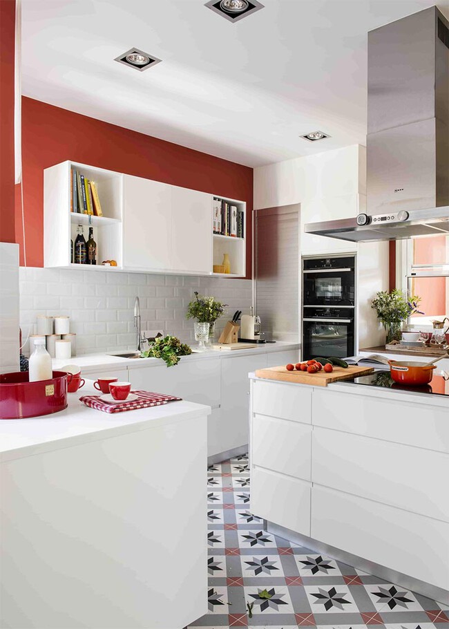 Empezamos con Vintage and Chic y un piso reformado en Barcelona con el color rojo como uno de sus grandes protagonistas. De su cocina nos quedamos con los paños de cuadros en rojo y blanco que en Amazon cuestan 18,90 euros el set de cuatro.