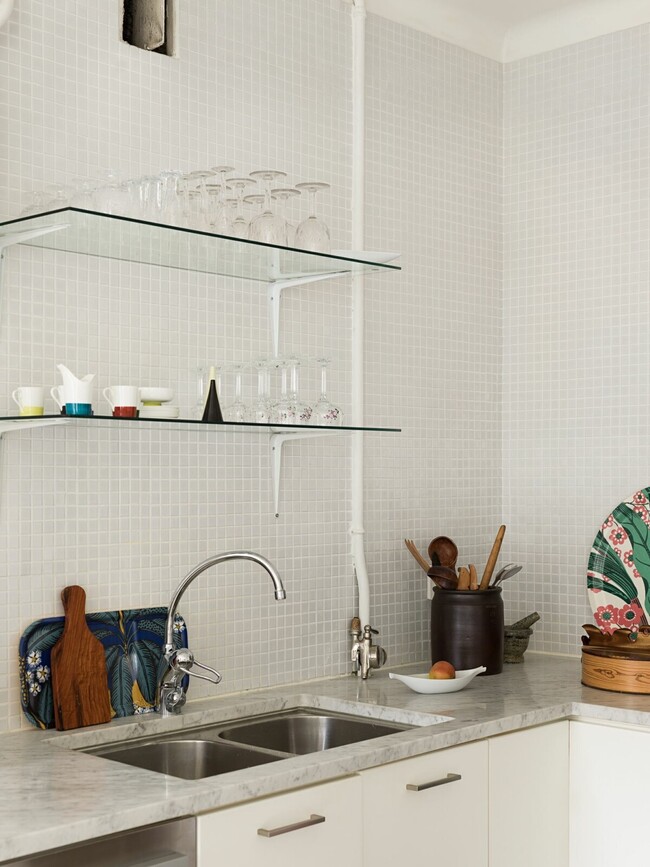 Empezamos nuestra semana decorativa con un apartamento sueco con muebles mid-century modern que veíamos en Delikatissen, del que nos quedamos, por ejemplo, con la cocina que es realmente singular. Un estante de vidrio de 30x10 cm lo hay en Amazon por 14,34 euros.