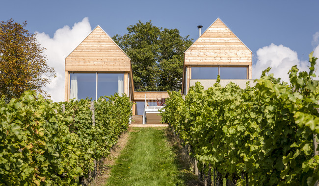 Sus marcados tejados a dos aguas son una interpretación moderna de las construcciones tradicionales de la zona, pero su pequeño tamaño y la austeridad de su exterior, no interrumpen la belleza del paisaje.