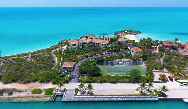 Ubicada en la isla de Providenciales perteneciente al archipiélago del Turcas y Caicos en el Caribe, esta finca cubre una superficie de cerca de veinte mil metros cuadrados. La residencia del difunto Prince, que se llama The Purple One, cuenta con poco más de 930 metros cuadrados que reúnen seis dormitorios, siete baños, dos playas privadas o un terreno de tenis entre otras cosas.