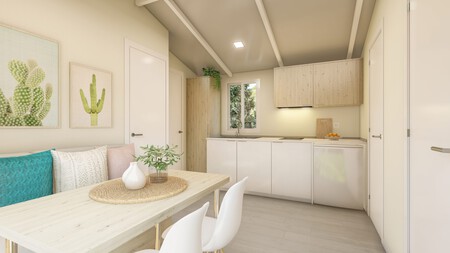 Este modelo de casa prefabricada en cuyo interior hoy curioseamos, se llama Family y tiene como peculiaridad que es el único de su gama con tres dormitorios, ideal por tanto para albergar familias grandes de hasta 7 personas. Gracias a su distribución inteligente y su gran ventanal de acceso, este modelo garantiza la máxima entrada de luz natural, creando un ambiente cálido y acogedor en su interior. Con unas medidas de 7,70 metros de largo por 4,30 metros de ancho, su espacio está optimizado para ofrecer comodidad y funcionalidad y lo mejor es el precio de tan solo 38.239 euros.