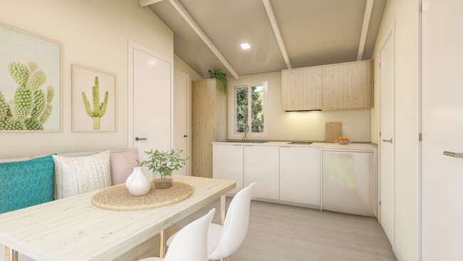 Totalmente amueblada, esta vivienda prefabricada incluye un salón con sofá-arcón en "L", un baño compacto con cabina de ducha de alta resistencia y una cocina moderna equipada con electrodomésticos esenciales como frigorífico y vitrocerámica. Además, todas las estancias cuentan con iluminación LED. El dormitorio principal dispone de una cama de 135 x 190 cm, mientras que las habitaciones secundarias ofrecen camas de 80 x 190 cm, con armarios y luces de lectura integradas.