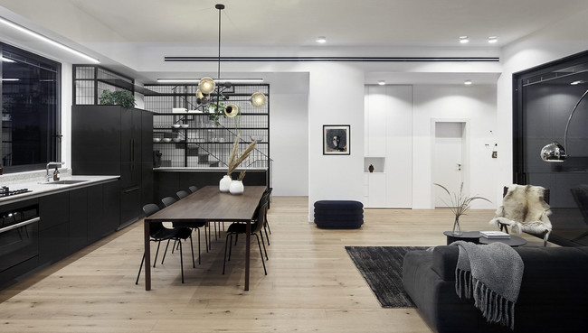 Esta casa triplex de Tel-Aviv está rodeada de una bonita terraza con jardín de 400 m2 y en su interior, se ha apostado por un diseño monocromo con el blanco y negro como hilo conductor de todos sus espacios.