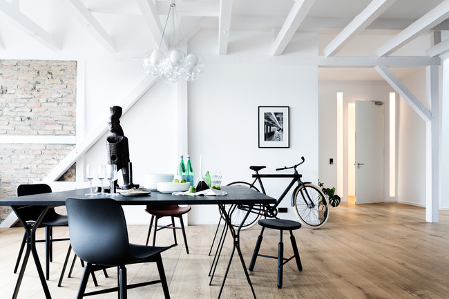 Cuando la luz no sobra, como en Berlin, diseñar pensando en no ponerle barreras es fundamental. En esta vivienda de la capital alemana, lo han conseguido con unas grandes ventanas, una orientación adecuada y el blanco impoluto en sus paredes. También ayuda el concepto de planta abierta ya que al eliminarse muchas paredes, la luz fluye libremente y se percibe desde la entrada.