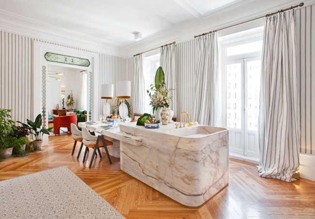 Que si lo piensas bien no nos pilla de nuevo. Ya se lo habíamos visto a la genial Beatriz Silveira en las ediciones de casa Decor 2017 y 2018. Ella es pionera y se suma a las vanguardias pero siempre llevándolas a su terreno. El terreno de la "buena" decoración que demuestra que una decoración clásica no es incompatible con las últimas tendencias.