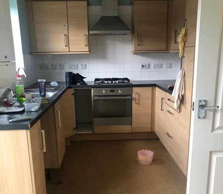 Y para darle más seguridad al pegado, en lugar de usar el autoadhesivo que venía con el vinilo, decidieron usar un adhesivo para azulejos. Ya solo con este nuevo suelo de vinilo, la cocina pegó un cambio radical rejuveneciendo hasta el color de los armarios. Pero Leah no se quiso quedar ahí, ya que renovar el pavimento fue solo el primer caso de esta transformación que costó unos 250 libras, que al cambio son 284 euros.