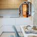 Los muebles bajos y las columnas se han renovado en blanco satinado, aportando ligereza y continuidad. En contraste, los muebles altos y la mesa incorporan madera natural, introduciendo una calidez elegante que equilibra la luminosidad general.