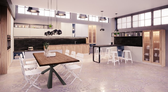 Si quieres huir de la sobriedad y de la monotonía , mezclar texturas lisas y madera es la solución. En este sentido, desde BC3 Cocinas apuestan por “combinar materiales naturales como la madera y el vidrio con el hierro y el mármol para crear un espacio tranquilo, cálido y relajado. Además, si se quiere arriesgar y tener una cocina con una estética urbana, la mejor opción es incluir el negro o accesorios, como los grifos, en oro o cobre, y conseguir un contraste rompedor”.