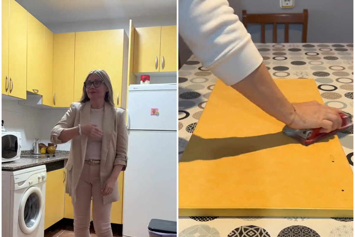 La cocina original mostraba el desgaste del tiempo con muebles amarillos, superficies envejecidas y una estética que había dejado de acompañar el ritmo de vida actual. La reforma se planteó con un objetivo claro, renovar por completo la imagen sin recurrir a obras, apostando por técnicas accesibles, materiales económicos y un proceso meticuloso.